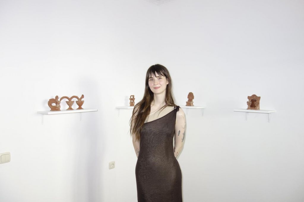 Художниця створює з зібраної глини предмети побуту за мотивами традиційної української витинанки.