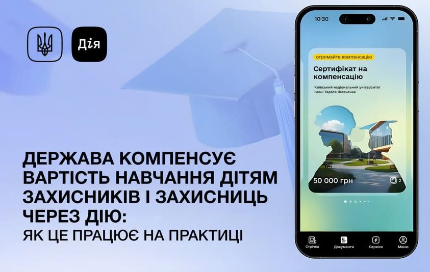 Діти ветеранів й ветеранок отримують від держави сертифікати на компенсацію вартості навчання за контрактом у закладах професійної, фахової передвищої та вищої освіти за 2024–25 навчальний рік. Сертифікати надсилаються поетапно через застосунок Дія.