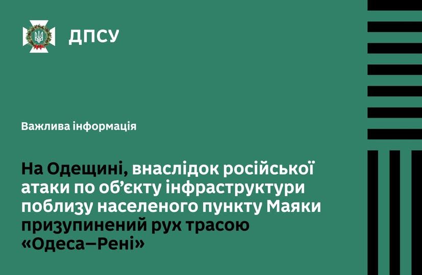 Унаслідок російської атаки по об’єкту інфраструктури поблизу н.п. Маяки призупинено рух трасою Одеса–Рені, що ускладнило доїзд до низки пунктів пропуску на Одещині