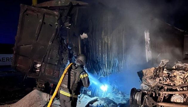 На парковці спалахнули вантажні автомобілі, також зазнали пошкоджень легкові автівки.