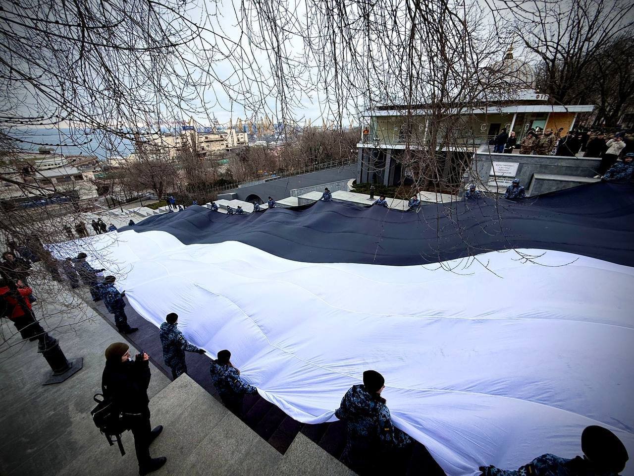 В центрі Одеси підняли Прапор Надії. Це є символом підтримки військовополонених, зниклих безвісти захисників та їхніх родин.