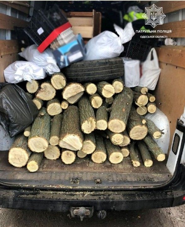 На трасі Київ — Одеса, на одній із дорожніх станцій патрульної поліції, інспектори зупинили автомобіль Opel. Під час поверхневої перевірки в багажному відділені поліцейські виявили стовбури дерев.