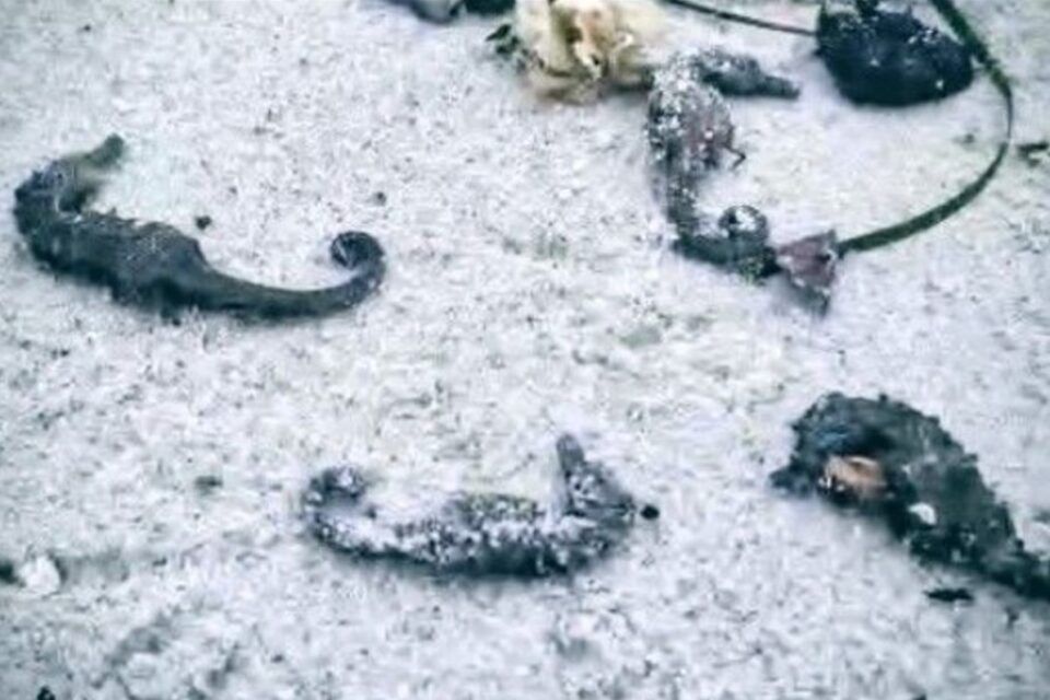 Останні обстеження узбережжя Одеси (район 9–11 станцій Великого Фонтану) фіксують тривожну картину: масові викиди морських організмів, серед яких аномально висока концентрація чорноморського морського коника – Hippocampus guttulatus. Про це у Фейсбук пише еколог та громадський діяч Владислав Балінський.