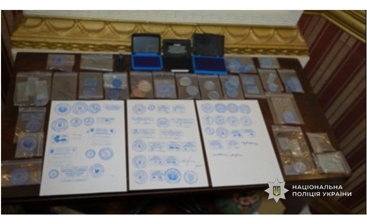 Під час санкціонованого обшуку в оселі зловмисника слідчі вилучили як речові докази низку печаток медичних та інших державних установ, техніку для друку, різноманітну документацію, серед якої – посвідки на постійне проживання іноземців на території України, пенсійні посвідчення, тимчасові посвідчення військовозобов’язаних, довідки ВЛК та МСЕК щодо непридатності клієнтів і наявності в них інвалідності з довічним строком, посвідчення співробітників правоохоронних органів, виписки з медичних карт амбулаторного та стаціонарного хворого, у тому числі й на його ім’я.