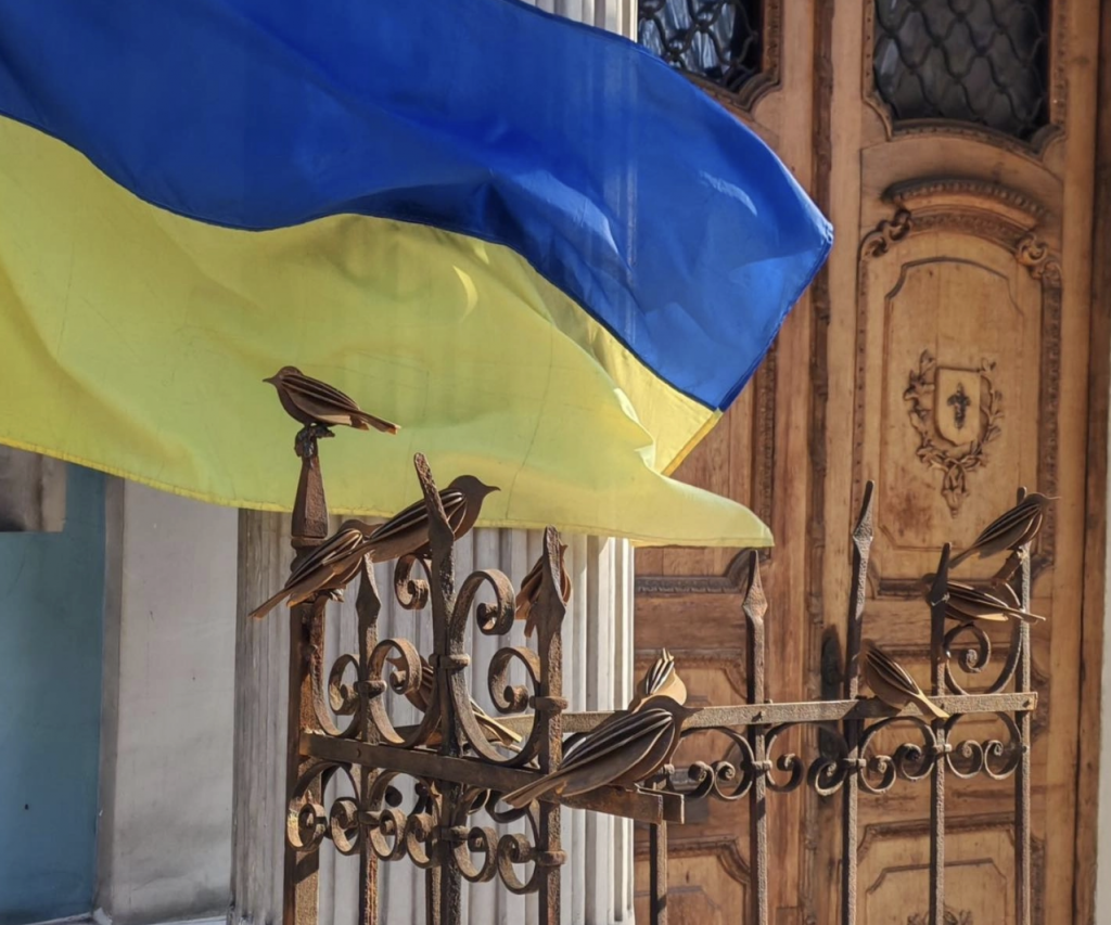 Біля входу до Одеського музею західного і східного мистецтва встановили артоб’єкт у межах міжнародного авторського проєкту «Дотик неба» пілота, митця та волонтера Гідо Хайсіга.