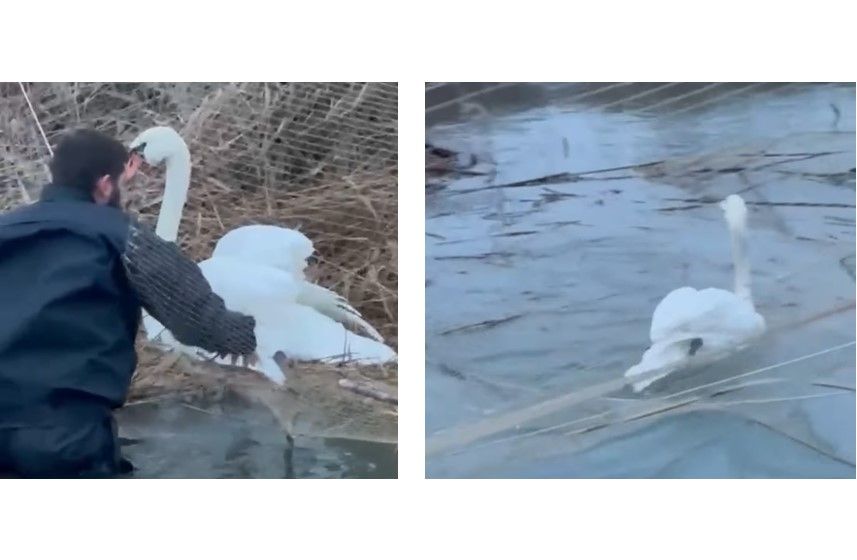 Днями охоронці морських кордонів врятували лебедя. Величний птах заплутався в сітці, і ситуація вимагала швидких дій. Один із прикордонників, не вагаючись, одягнув гідрокостюм і зайшов у холодну воду. За кілька хвилин йому вдалося обережно виплутати птаха зі щільної пастки. Наляканий, але неушкоджений лебідь зрештою вирвався на волю і поплив до своєї зграї.