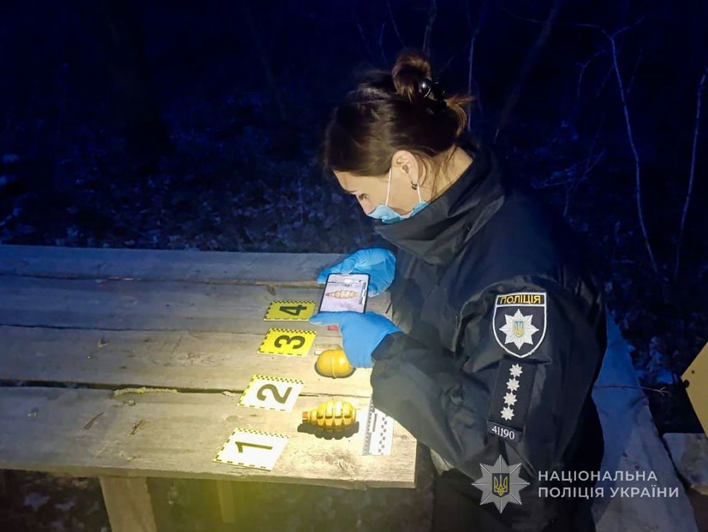 Із залученням фахівців управління вибухотехнічної служби обласної поліції слідчі територіального підрозділу поліції вилучили небезпечні предмети з незаконного обігу та скерували їх на експертизу. За попереднім висновком вибухотехніків, при поєднанні вони утворюють осколкові ручні гранати і належать до бойових припасів. Також як речові докази вилучено гроші, отримані ділком за оборудку.