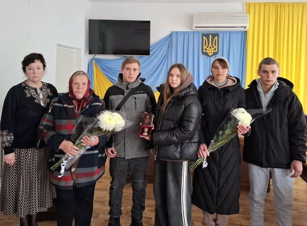 Сьогодні секретар ради Лариса Арансон державну нагороду передала дружині Героя — Тетяні Вязовській.