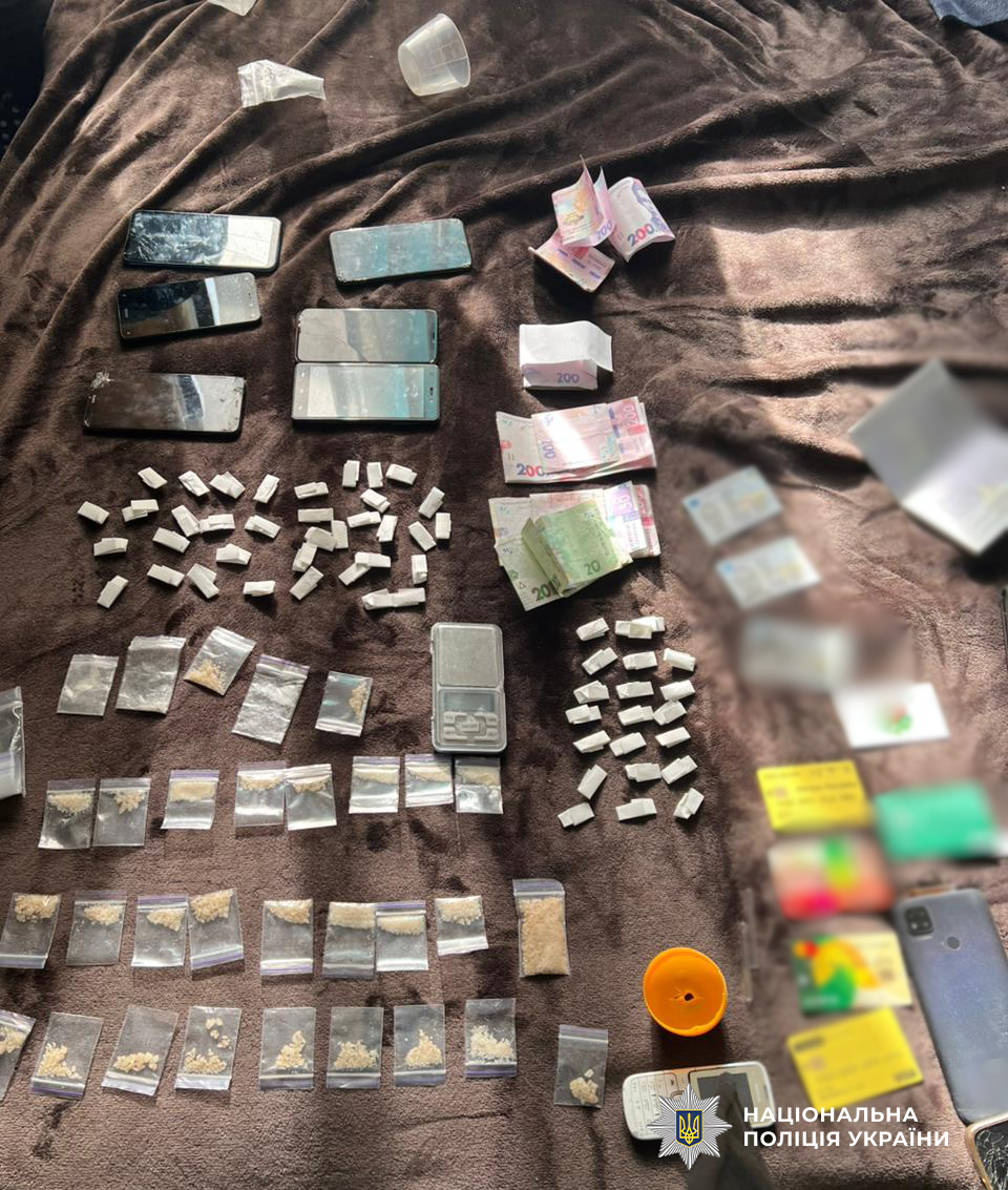 Під час обшуку за місцем мешкання затриманої слідчі вилучили в якості речових доказів ваги, пакувальний матеріал, готівку, мобільні телефони та загалом майже сотню розфасованих згортків і пакетиків з невідомими речовинами, які скеровано на експертизу.