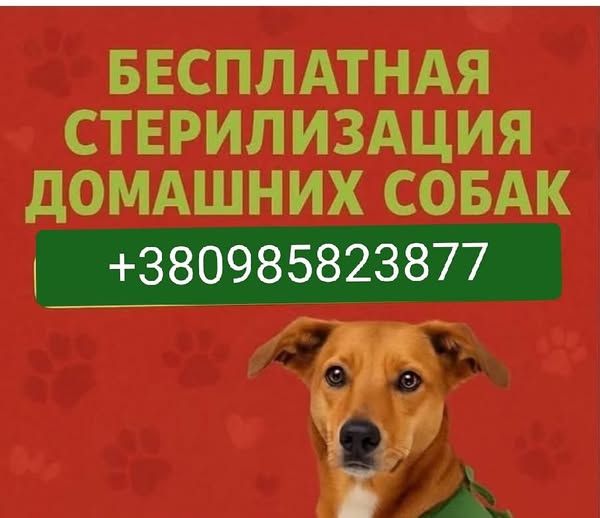 З 22 вересня і протягом декількох днів, буде проходити безкоштовна стерилізація домашніх і вуличних собак (тільки самок!!). БУДЬ-ЯКОГО РОЗМІРУ І ПОРІДИ!