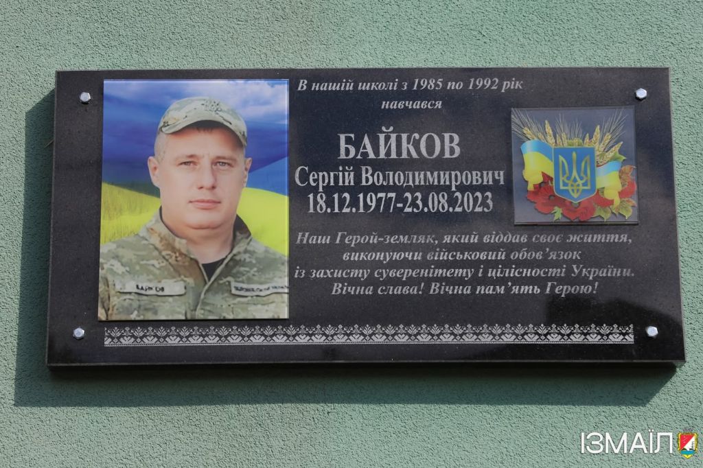 В Ізмаїлі 1 жовтня в гімназії №11 відкрито меморіальну дошку на честь Захисника України, стрільця піхотної роти, солдата Сергія Володимировича Байкова, який віддав найдорожче – власне життя – за мирне, вільне та незалежне майбутнє українського народу.