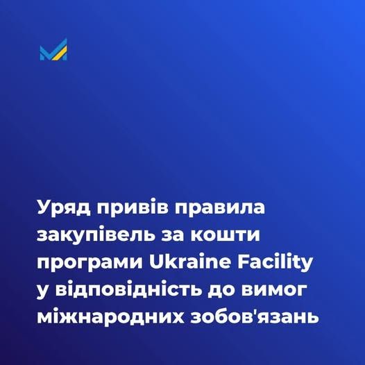 Уряд затвердив новий розділ у правилах публічних закупівель під час воєнного стану. Він регулює, як саме замовники можуть використовувати кошти програми Ukraine Facility від Європейського Союзу.