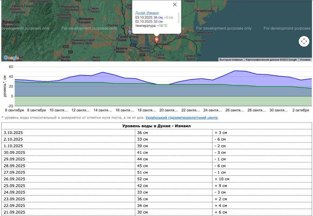 Таким чином, за тиждень рівень води в Дунаї в Ізмаїлі коливався від 33 до 51 см, що свідчить про динамічні зміни водного режиму річки.