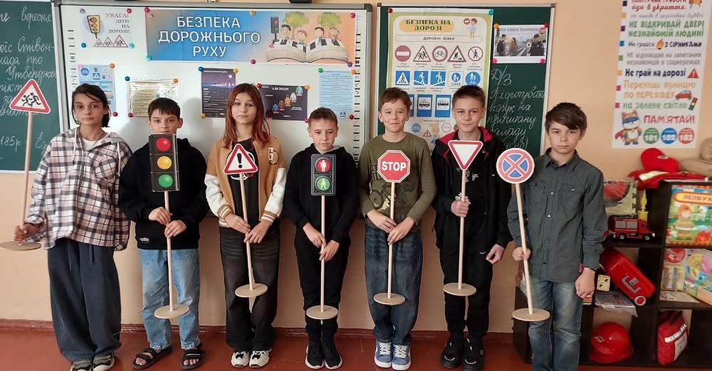 Завершився квест груповою роботою на станції "Збери дорожній знак", де учні на швидкість збирали розрізані на різні елементи дорожні знаки, а потім пояснювали їхнє значення. Для учнів п’ятих класів (Димаренко Т.В.) було проведено тематичний урок, під час якого діти збирали пазли, вивчали групи дорожніх знаків, відпрацьовували навички переходу проїжджої частини, грали в інтерактивні ігри. Педагог-організатор Атанасова Т.С. провела тематичну бесіду для учнів шостих класів, під час якої діти вивчали групи дорожніх знаків, а потім, відпрацьовуючи навички пішоходів, грали в гру "Знайди потрібний знак".