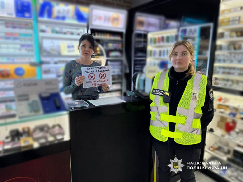 Під час профілактичних бесід поліцейські нагадали про адміністративну відповідальність за продаж алкоголю або тютюнових виробів неповнолітнім, передбачену частиною 2 статті 156 Кодексу України про адміністративні правопорушення. За такі дії передбачено штраф від 6 800 до 13 600 гривень.