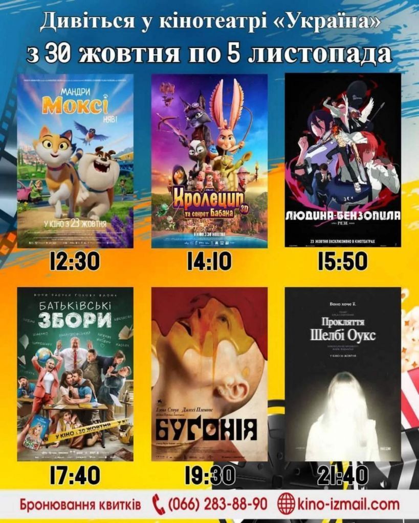 Афіша у кінотеатрі "Україна" з 30 жовтня по 5 листопада