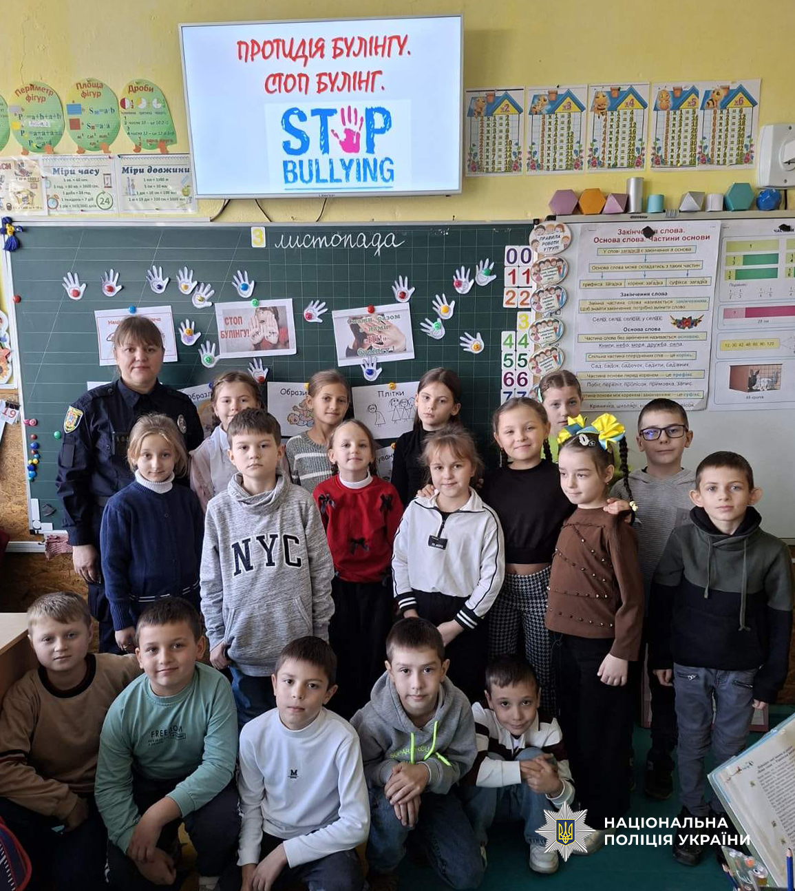 Приділили увагу й темі булінгу. Поліцейські наголосили: цькування — це правопорушення, яке має правові наслідки. Дітям пояснили, що важливо поважати одне одного, підтримувати однокласників і не залишатися осторонь, якщо хтось потребує допомоги.