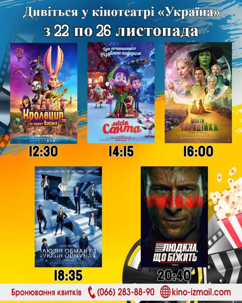 Афіша у кінотеатрі "Україна" з 22 по 26 листопада