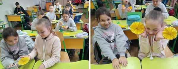 Для учнів провели зворушливий майстер-клас із виготовлення квітки-оберега – символу добра, миру та світла. Рукотворна квітка, створена маленькими майстрами, стала не лише яскравим виробом, а й щирим побажанням миру всім дітям світу.