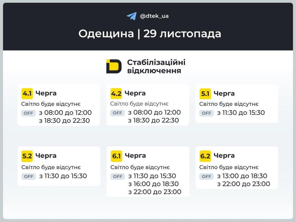 Одещина: оновлені графіки відключень на 29 листопада