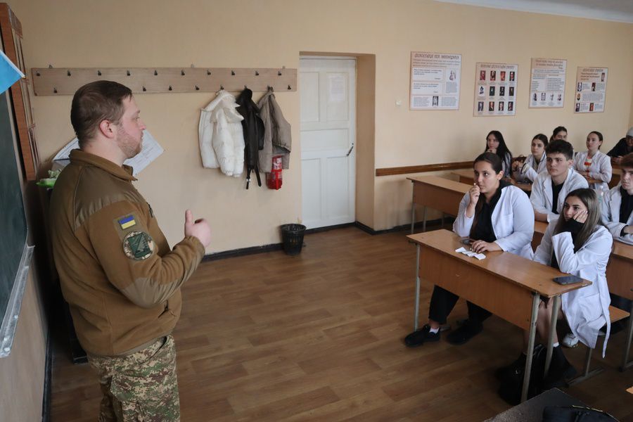 Начальник медичної служби батальйону, капітан Богдан Слюсаренко, ознайомив майбутніх медиків із наявними вакансіями у підрозділах Національної гвардії України, умовами проходження служби та соціальними гарантіями для військовослужбовців, які обирають контрактну форму служби. Він також розповів про специфіку роботи медиків у військових підрозділах і можливості професійного розвитку під час служби.