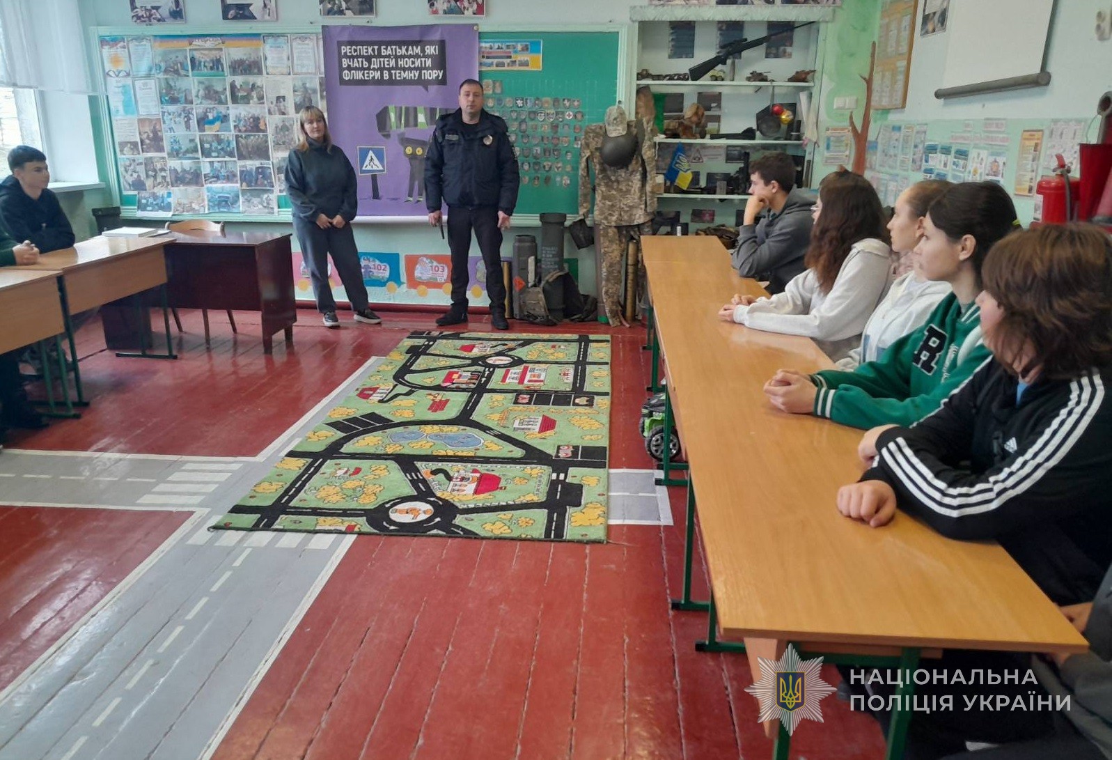 У навчальних закладах на уроках молоді нагадали основні правила безпечної поведінки на дорозі, показали жести регулювальника, наголосили, що треба використовувати світловідбивні елементи, щоб бути помітними у темряві.