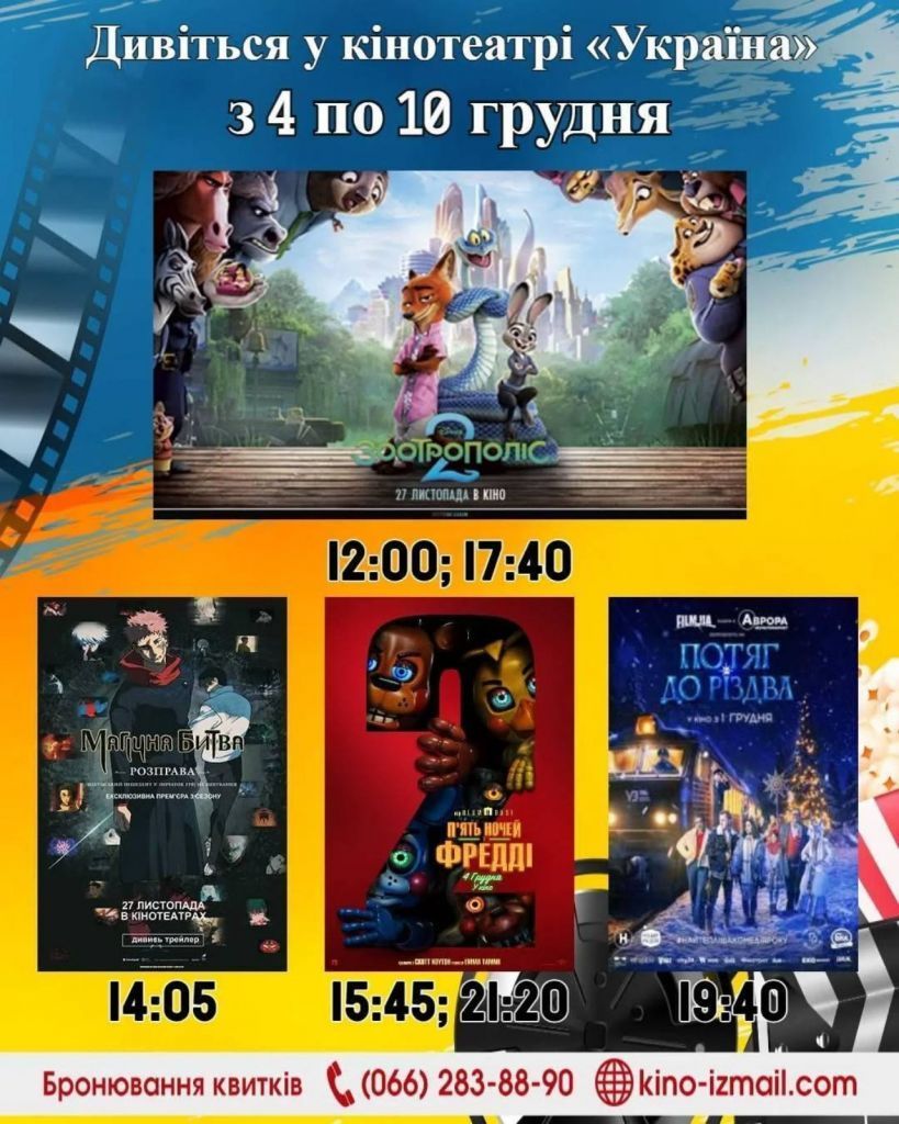 Афіша у кінотеатрі "Україна" з 4 по 10 грудня