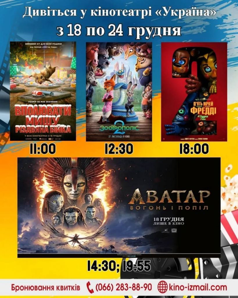 Афіша у кінотеатрі "Україна" з 18 по 24 грудня