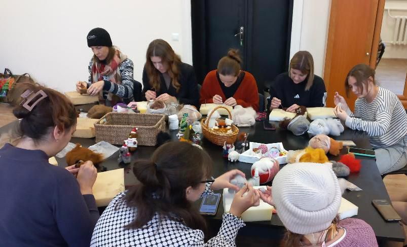 Пані Анастасія уважно та з турботливо допомагала кожній учасниці, ділилася знаннями про види вовни та способи її застосування. У студії панувала по-справжньому тепла атмосфера: дружні розмови, усмішки, нові навички й відчуття спокою та радості. Ця зустріч стала маленьким різдвяним дивом — моментом, коли творчість об’єднує, надихає і повертає у світ світлих дитячих спогадів.