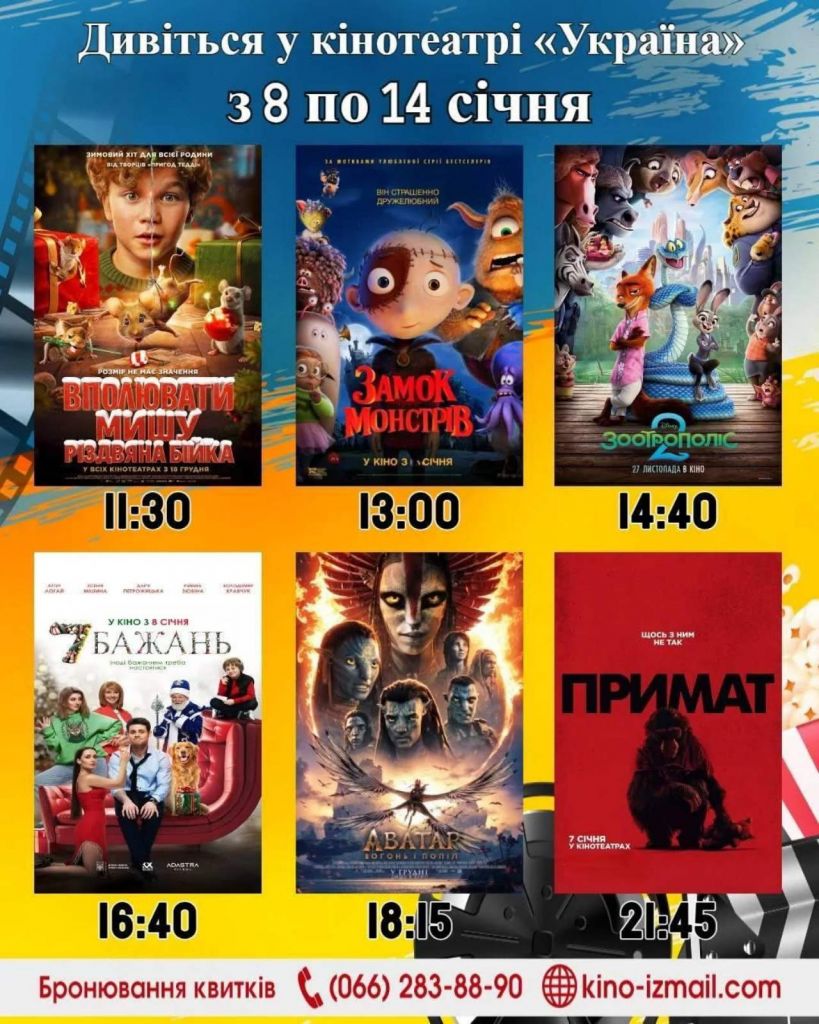 Афіша у кінотеатрі "Україна" з 8 по 14 січня