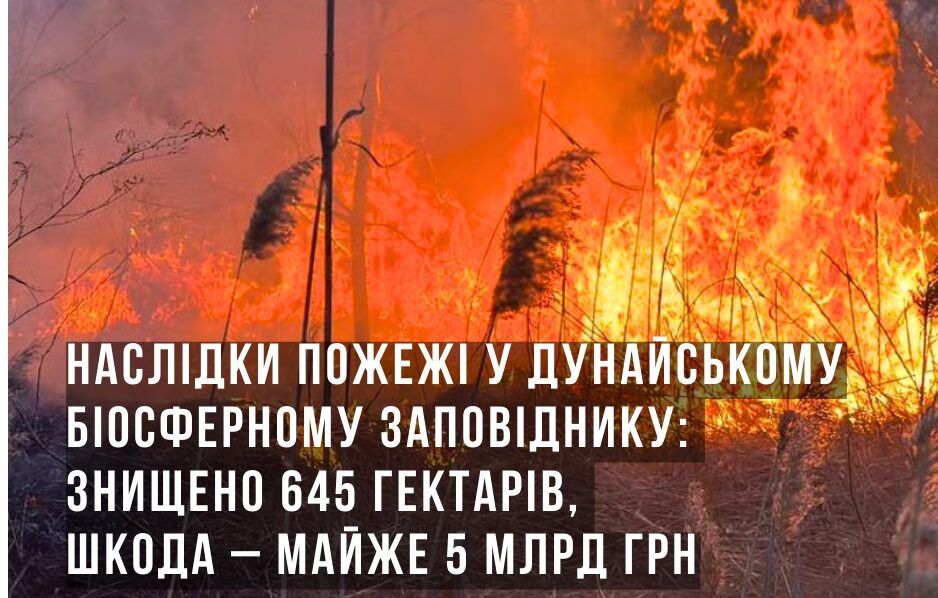 Внаслідок масштабної пожежі у Дунайському біосферному заповіднику було знищено 645 гектарів біосферного заповідника, та завдано шкоди на майже 5 мільярдів гривень. Про це повідомляє “Бессарабія INFORM”, посилаючись на Державну екологічну інспекцію Південно-Західного округу.