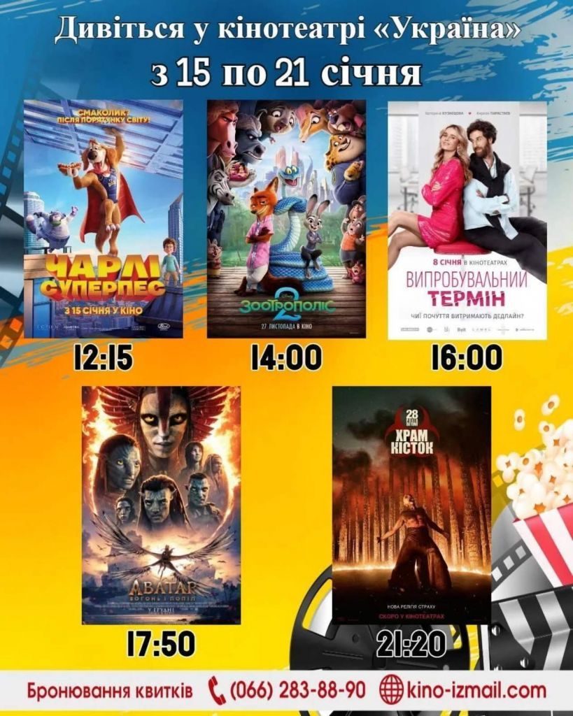 Афіша у кінотеатрі "Україна" з 15 по 21 січня