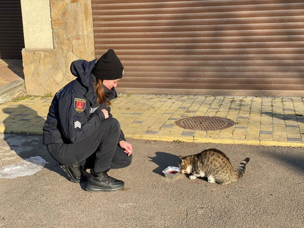 В Ізмаїлі патрульні поліцейські закликають містян допомагати безпритульним тваринам під час морозів