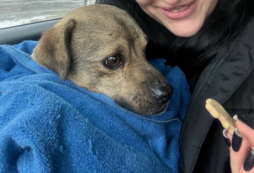 Друга вилучена тварина — метис американського стаффордширського тер’єра віком близько 8–9 місяців. За словами лікарів, собака мала критичну недовагу: замість 20–22 кілограмів вона важила лише 12.