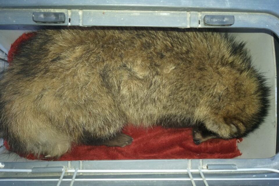 Зрозумівши, що гостя просто так не впіймати, Олена приспала його з духової трубки. Потім «єнотика» відвезли до ветеринарної лікарні, де йому зробили щеплення від сказу та обробку від бліх.