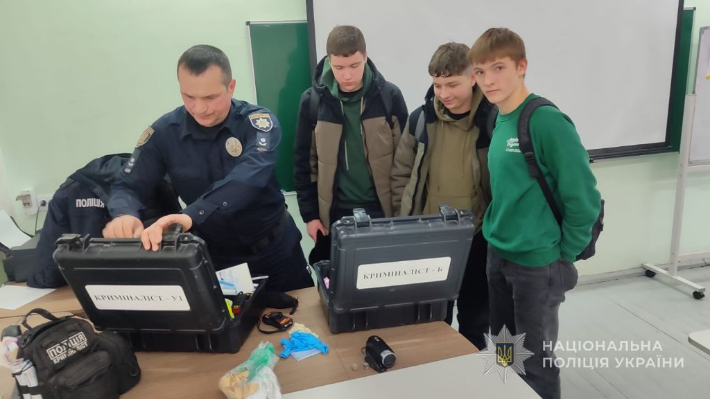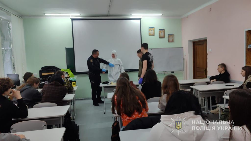 Особливий захват в учнів викликала робота криміналістів. Спеціаліст розповів про свою професію, показав обладнання та пояснив, як збирає і зберігає докази, а також дав змогу спробувати себе в ролі молодих криміналістів.