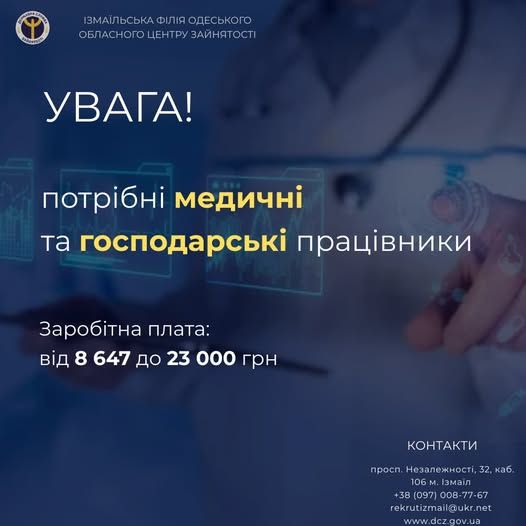Робота в лікарні м. Ізмаїл | Потрібні медичні та господарські працівники