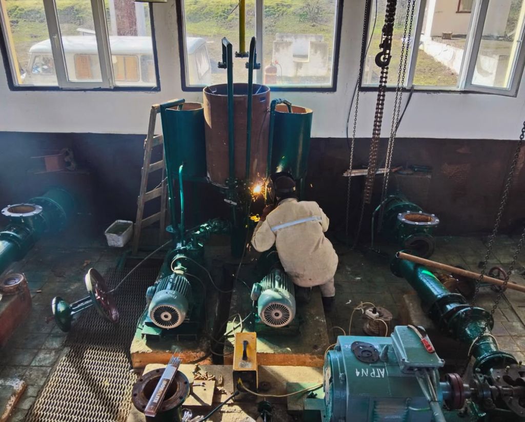 ремонт насосно-силового обладнання на насосних станціях НСП - 2 Ізмаїльська та ГНС - Кислицька, який виконується працівниками експлуатаційних дільниць № 2 та 3. Також зображено ремонт трансформатору, який виконується фахівцями цеху з ремонту електроустаткування.