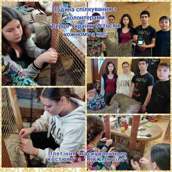 Гуртківці та педагоги закладу продовжують активно співпрацювати з волонтерами: протягом місяця плели сітки для ЗСУ; взяли участь у тематичній годині спілкування з волонтерами міста Ізмаїл «Серце України б’ється в кожному з нас»; виготовляли окопні свічки для ЗСУ, писали листи вдячності українським військовим.