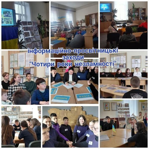 Для вихованців старшого віку проведено: інформаційно-просвітницькі бесіди «Чотири роки незламності: шлях до перемоги», «Україна після перемоги: мрії та реальність» та «Україна: воля, гартована вогнем»; віртуальні уроки з презентаційними матеріалами «Війна за Незалежність України», «Герої серед нас: історії мужності» про героїчний шлях наших земляків, які стали прикладом мужності під час перших днів війни; кіноклуб «Нескорені міста – люди незламного духу» та «1461 день Незламності».