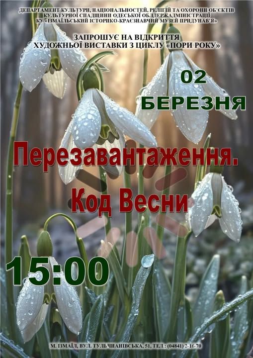 В Ізмаїльському історико-краєзнавчому музеї Придунав’я в Ізмаїлі відкриється художня виставка «Перезавантаження. Код Весни» 25 февраля в 14:09Общество Загрузка...
