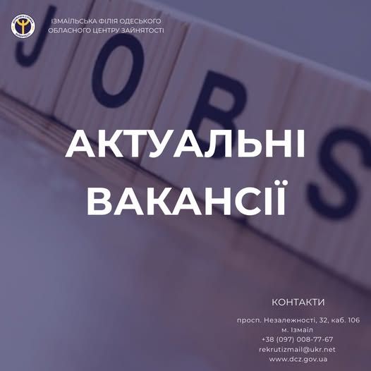 Ми маємо актуальні вакансії по м. Ізмаїл, м. Кілія та району!