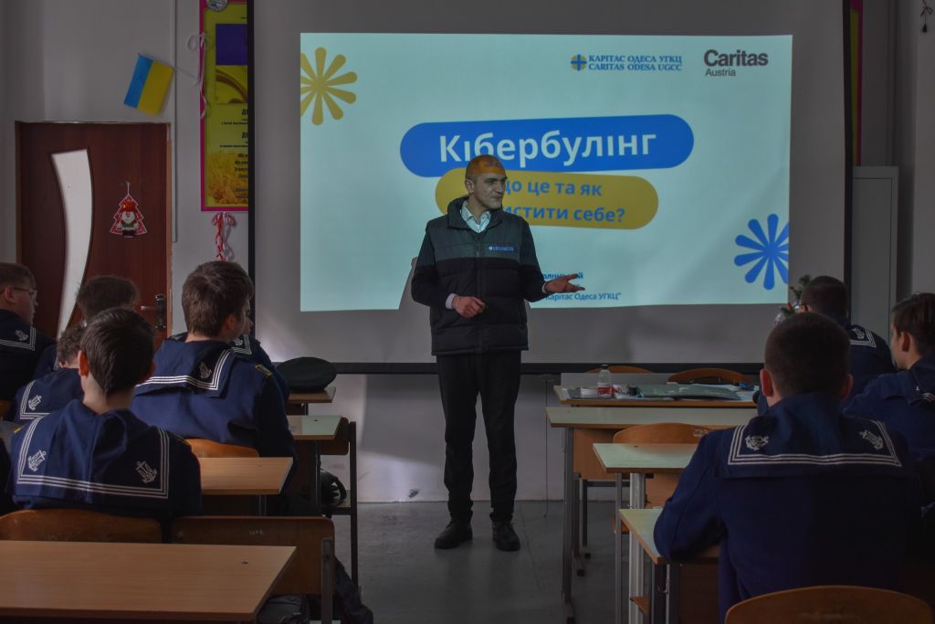 До Міжнародного дня протидії булінгу фахівці СООП Ізмаїл Благодійного фонду Caritas Odesa UGCC провели інтерактивний просвітницький захід для курсантів Дунайський фаховий коледж НУ "ОМА".