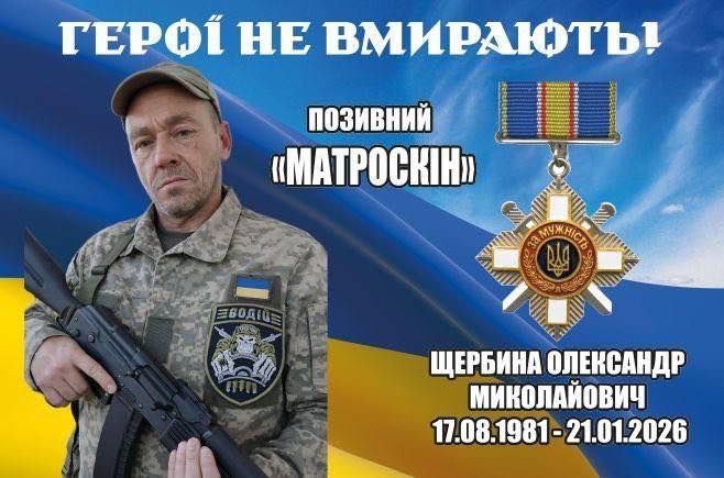 З глибоким сумом повідомляємо про ще одну непоправну втрату для нашого району. Захищаючи Україну, її свободу та незалежність, загинув наш земляк, мешканець села Матроска Саф’янівської громади Олександр Миколайович Щербина.