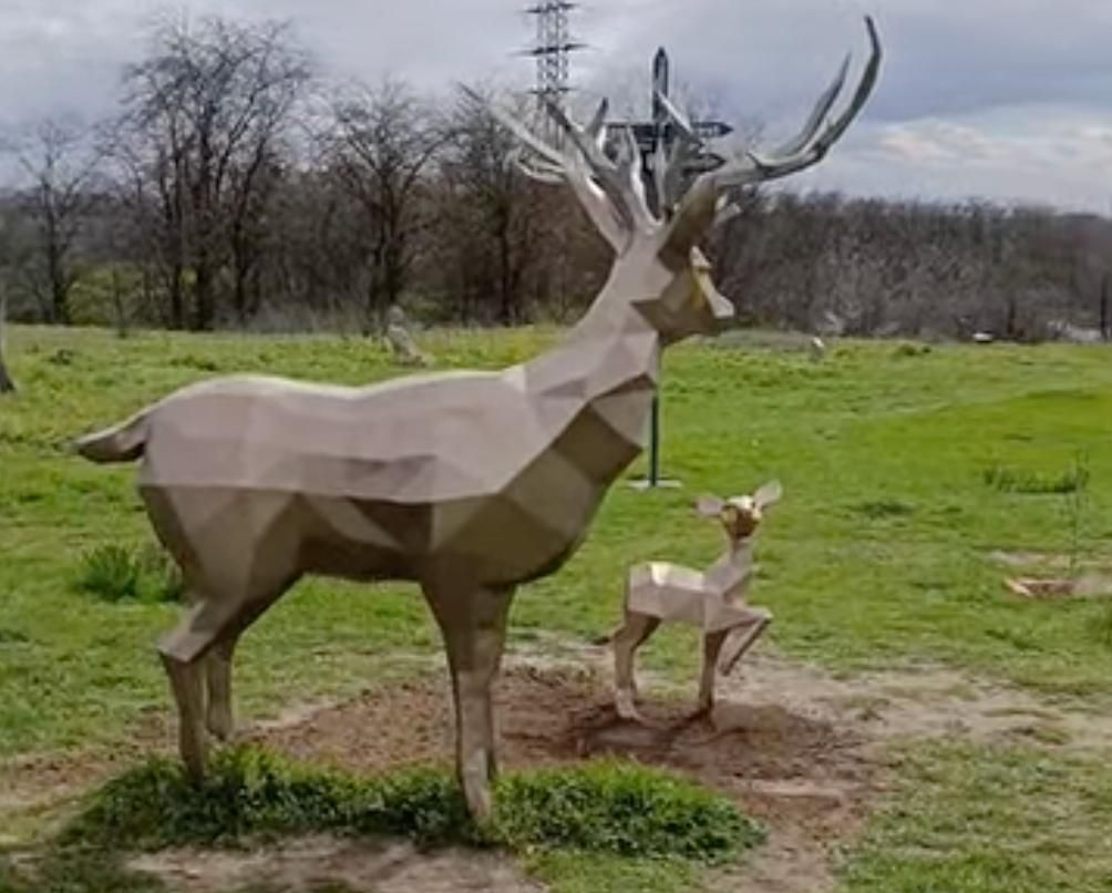 На відео видно, що олені вже стоять на місці, і відремонтовані.