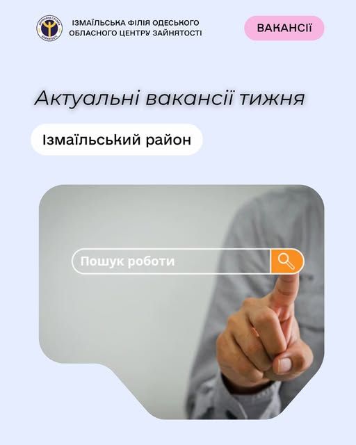 Пропонуємо актуальні вакансії тижня по Ізмаїльському району