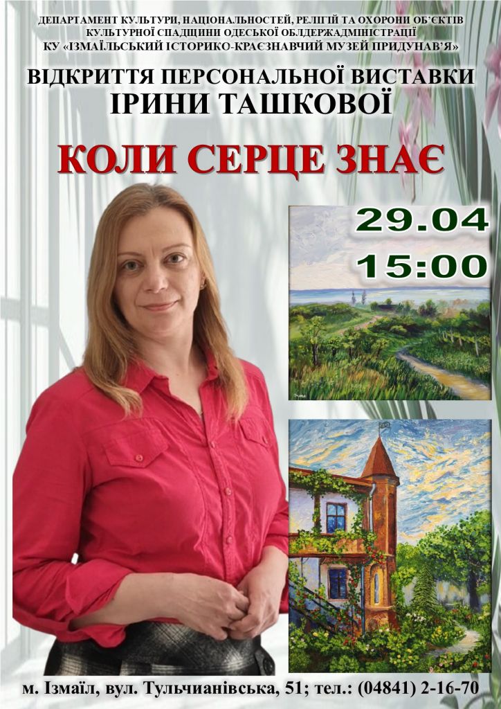 У музеї Придунав’я — відкриття виставки Ірини Ташкової «Коли серце знає»