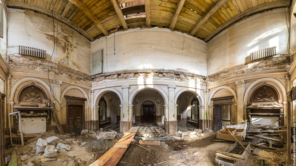 Його оточував розкішний парк на 200 гектарів, де можна було гуляти годинами. Кажуть, що до 1939 року за парком доглядало 30 садівників. Сьогодні від тієї величі залишилися лише обшарпані стіни, що нагадують про минулу славу.