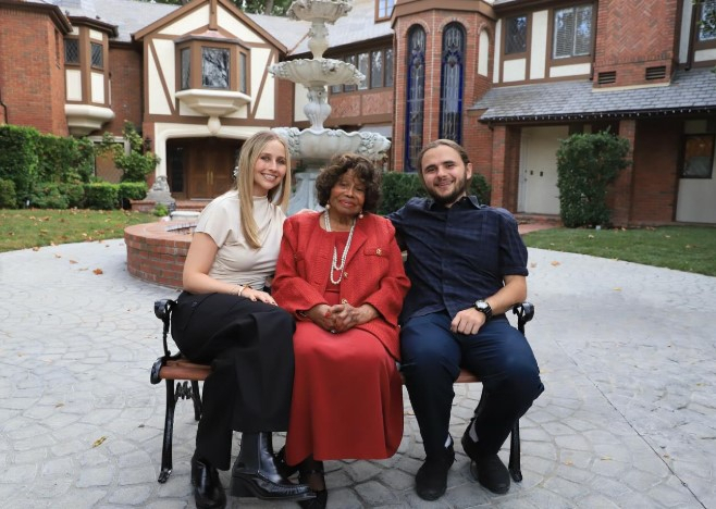 На одному зі знімків закохані позують поруч із 95-річною Кетрін Джексон - матір'ю Майкла Джексона. Фото зроблене біля родинного маєтку в Енсіно, Каліфорнія.