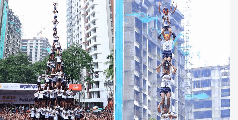 Піраміду утворили у місті Тане штату Махараштра під час святкування індуїстського фестивалю Дахі Ханді, коли відзначається народження Крішни